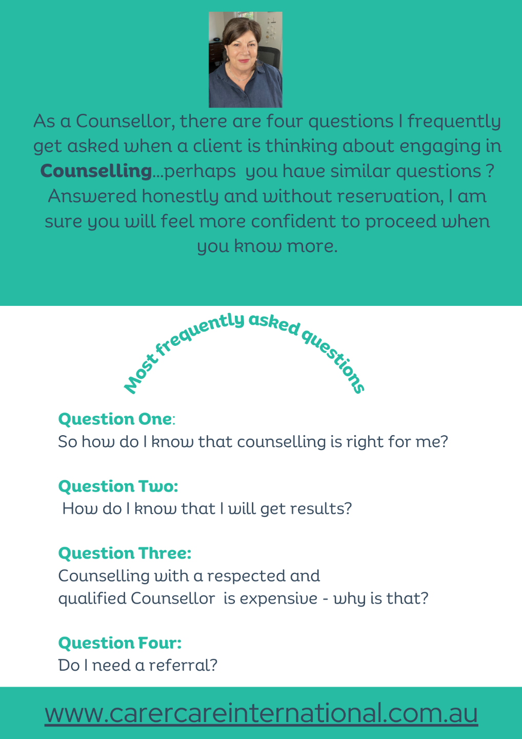 When clients are thinking about engaging in counselling, they have similar questions...