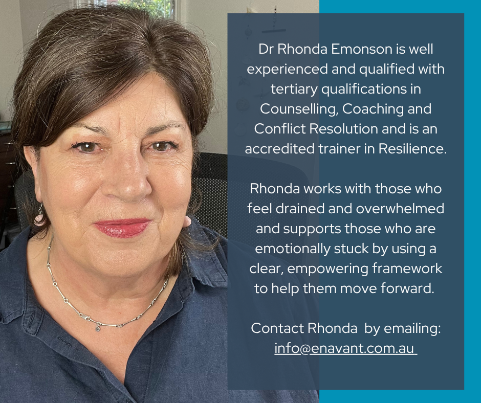 All information supplied by you remains confidential. Your email address will be added to our email list so you can receive updates, access to bonuses and resources to support you. You may unsubscribe at any time. Dr Rhonda Emonson, 566 Englehardt Street Albury, NSW 2640 as Director of Enavant Therapeutic Services